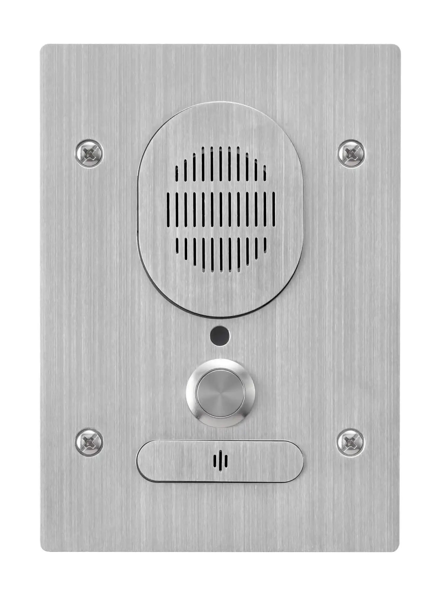 The N-8640DS is an IP door station employing packet audio technology. Connecting the N-8640DS to an IP network (LAN or WAN) permits hands-free conversation of high sound quality to be made between the N-8640DS and the intercom station connected to the IP Intercom Exchange, or between the N-8640DS and an IP multifunctional master station. Besides, the N-8640DS can be used in conjunction with the Multi Interface units through a network. The N-8640DS is equipped with 1 channel of control input, 5 channels of control outputs (including 1 channel of relay control output), and speaker output, thereby enabling connections of external equipment such as a sensor, indicator, and external speaker.