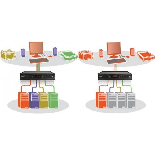 | Ports | 4 x computer inputs (VGA/USB); 1 x console (VGA/USB); 2 x USB 2.0; 1 x audio channel; 1 x options port (RS232) |