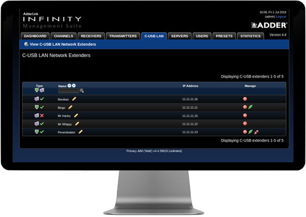 Ideal for enterprise workstations, broadcast studios, and secure IT networks, it facilitates applications such as remote USB sharing for multi-operator control and integration with switching systems. Fully compatible with USB 3.0 controllers, AdderLink Infinity Manager (A.I.M.) for synchronized routing, any USB 2.0 host, and third-party APIs, it works driver-free across all operating systems.