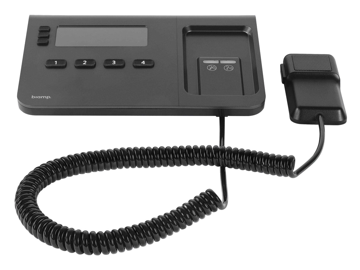 • Removable foot for flat mounting • High-quality, noise-canceling handheld microphone with magnetic latch • Powered by PoE+ (IEEE 802.3at Class 3, 15.4W) • Backlit liquid crystal display (LCD) technology • Optional PIN to restrict unauthorized use • NRTL listed to UL 62638-1, CSA C22.2 #62368-1, CE marked, and RoHS compliant • Covered by Biamp Systems’ five-year warranty |
