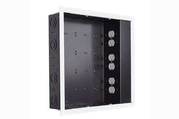 The PAC526FWP6 simplifies flat panel installation by providing an organized, recessed space for routing excess cables. The addition of the flange adds an aesthetic trimmed appearance and drywall mounting capability.