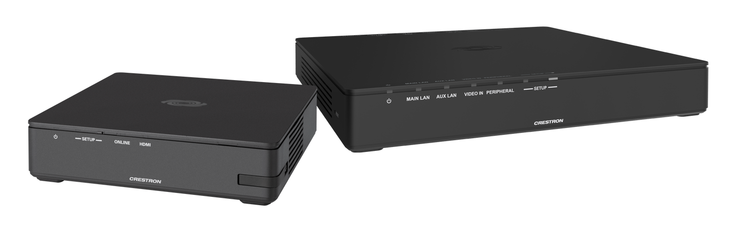 When no source is connected, the AM3-121 KIT displays a customizable welcome screen on the room display with simple instructions for connecting and presenting. Integration with Microsoft Exchange Server® (for Outlook® and Microsoft 365® users), Google Calendar™, or Crestron Fusion® room scheduling software enables the space's availability and meeting details to appear on screen. Throughout the meeting, notifications periodically indicate the remaining time and the next scheduled event. Pop-up messages sent from Crestron Fusion may also appear in the event of an emergency or to deliver an important announcement.