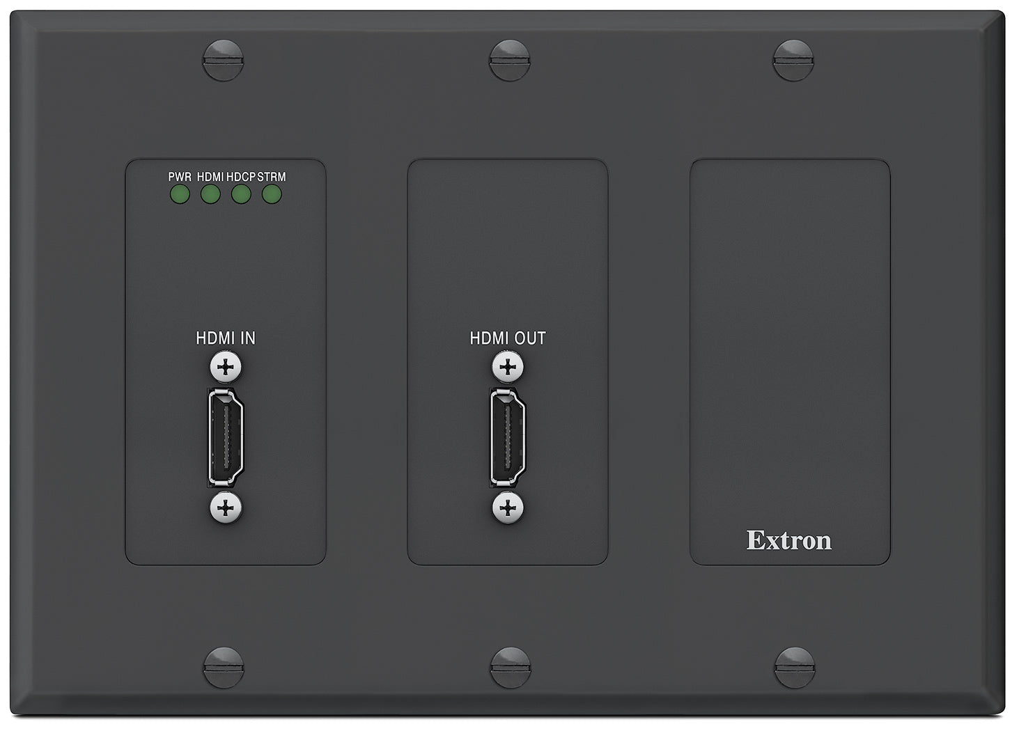 - Decorator-style wallplate design — Three‑gang, in-wall enclosure with a decorator-style faceplate is available in black or white to blend with a wide range of environments. Facilitates discreet installation near the source without a rack or external power.