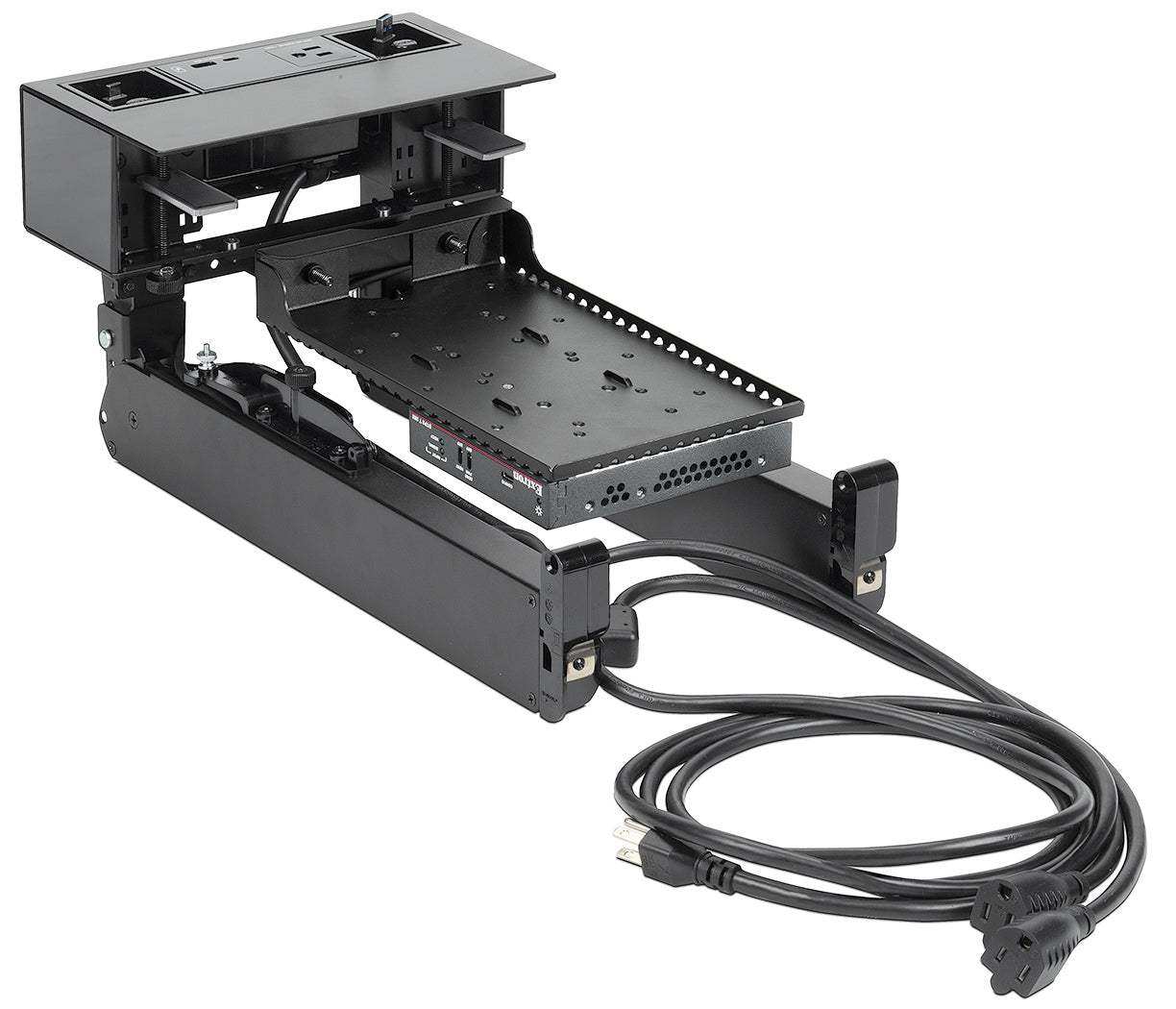 - Optional TMK 120 R Table Mount Kit available for two Retractor modules — Retractor modules mount close against the furniture surface for maximum leg room.