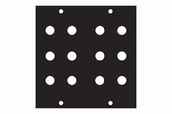 The BANA6 Punchout Panel from Middle Atlantic is designed for use with Middle Atlantic's FK frame. This model features (6) punchouts that will accommodate dual banana-jack receptacles requiring 1/2" holes. Use this panel to more professionally manage cabling in your setup and achieve a cleaner aesthetic look.