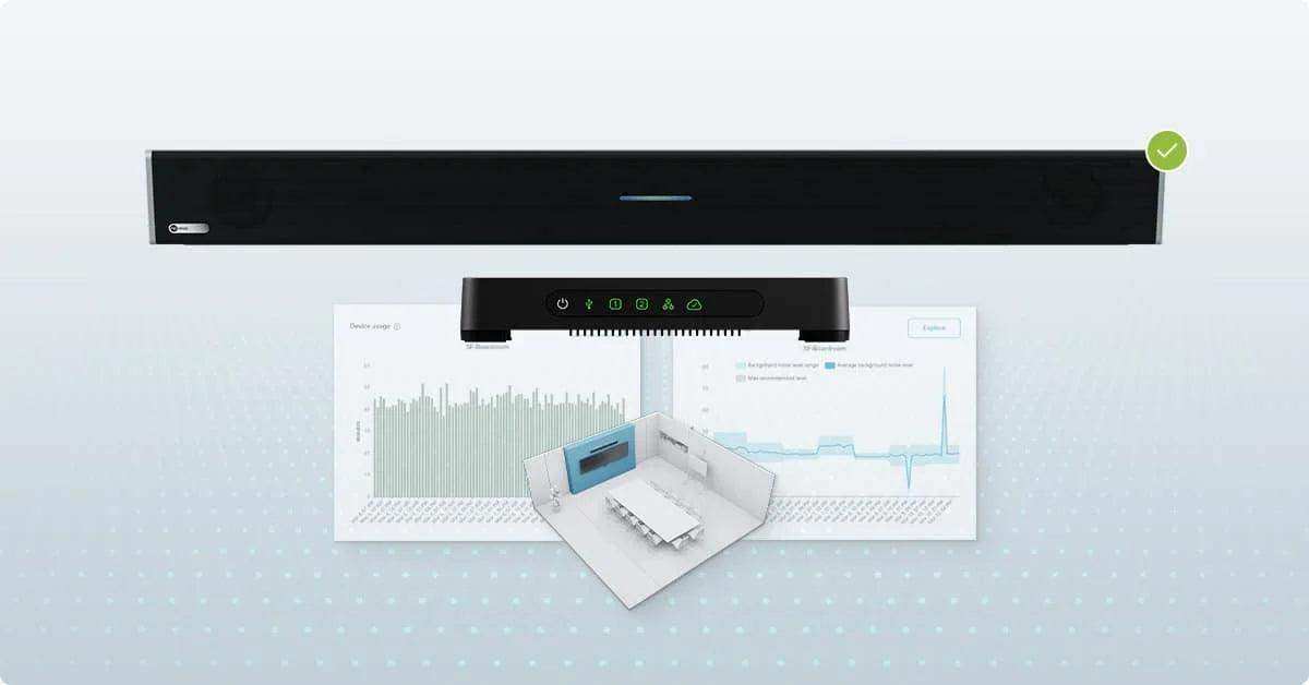 • Microphone and speaker bar providing full-room pickup with 8,192 virtual mics,