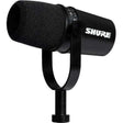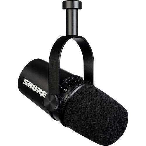 Get a professional podcast sound with audio interfaces, hard disk recorders, or direct to computers and mobile devices with the Shure MV7 Podcast Mic, styled here in black. This is a high-quality, broadcast-style dynamic microphone, one that has both a conventional XLR connection and a USB port.